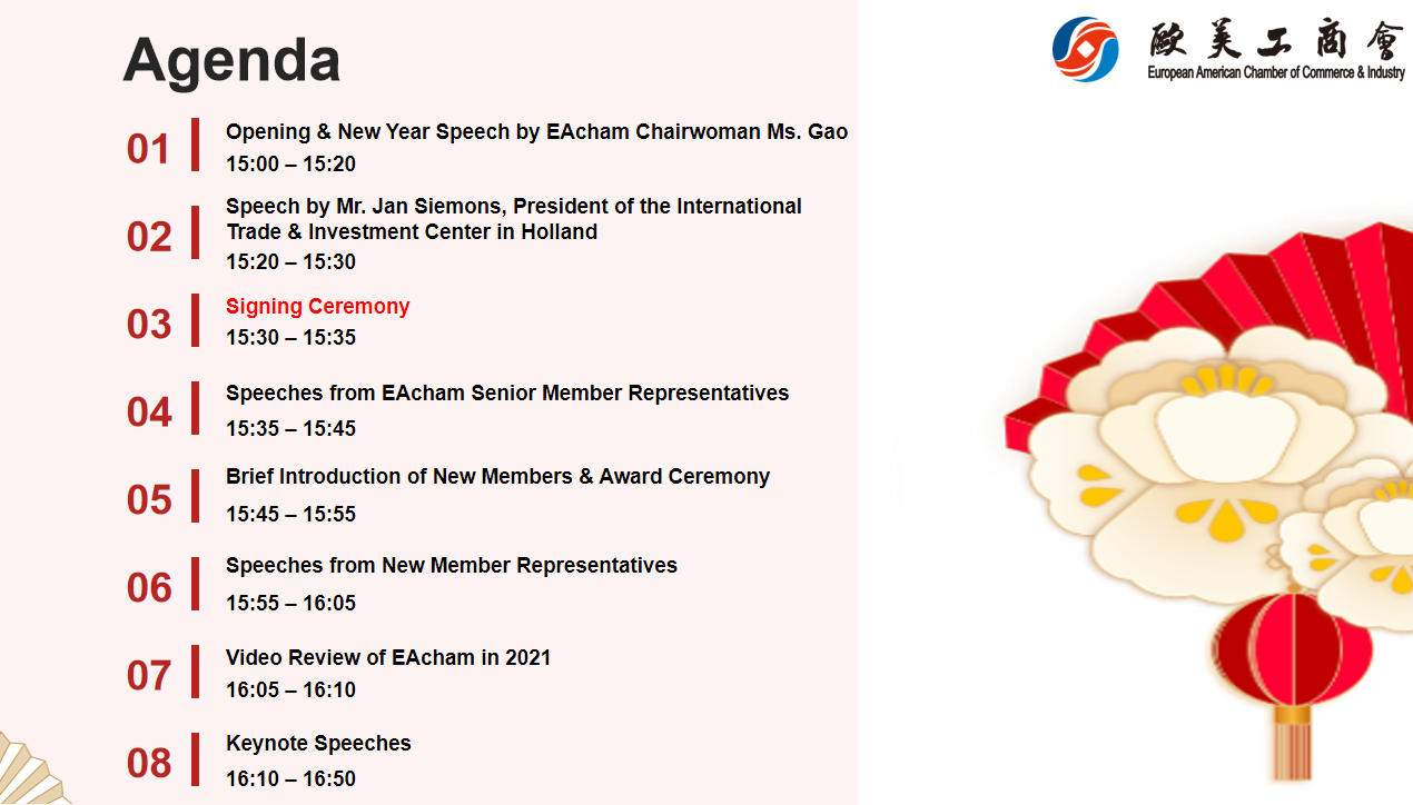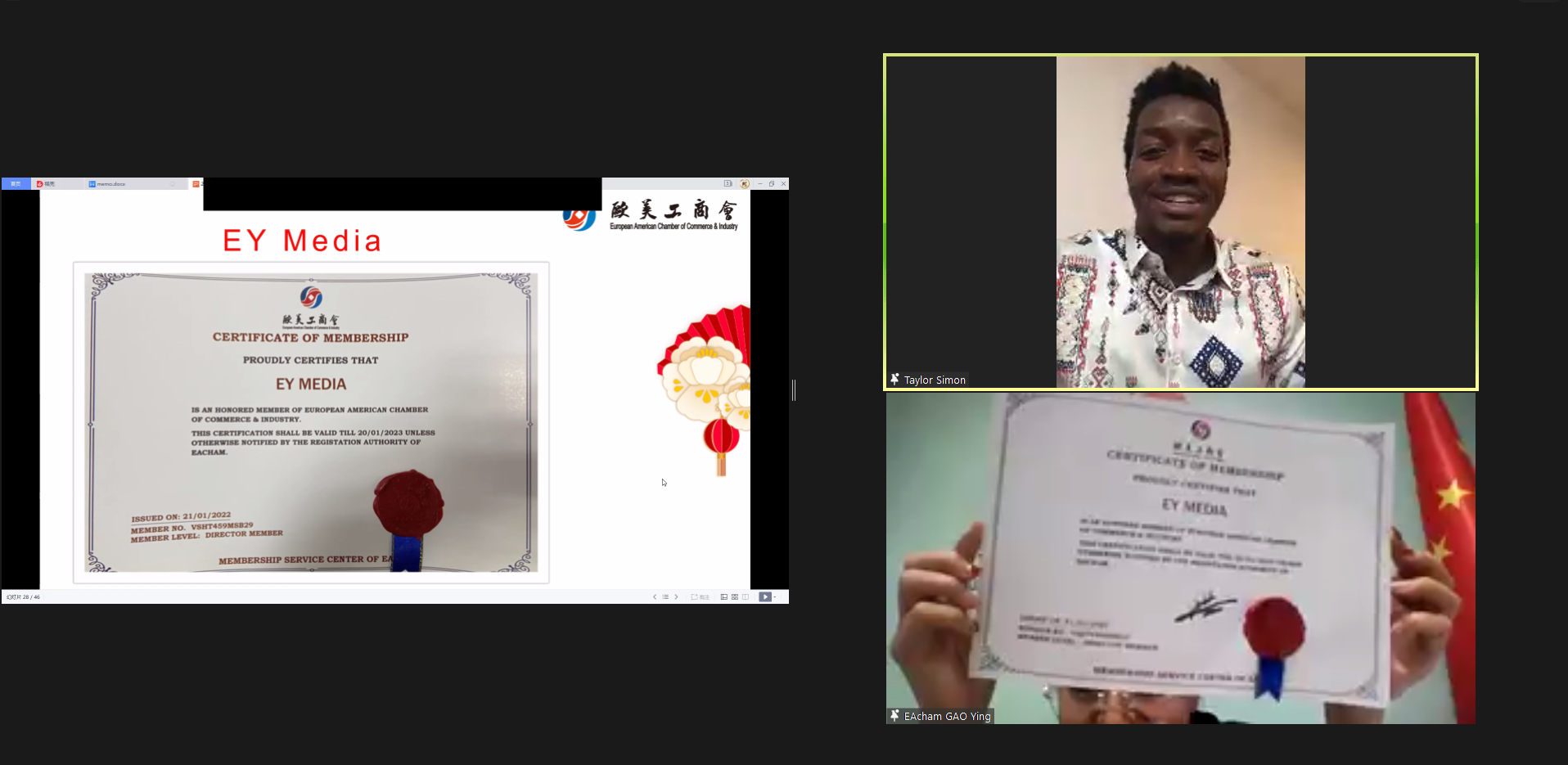 On January 21, 2022, EAcham Members Networking was successfully held online! Overseas member representatives and other guests from different countries around the world attended the conference online.