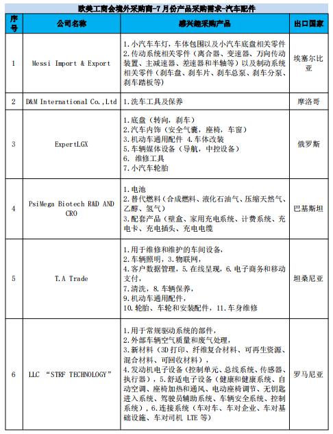 Since June this year, EAcham has held a number of online business matchmaking meetings on the theme of automobiles accessories, and has continuously received a large number of professional purchase orders from various countries. The demand is clear and the purchasing intention is strong. Welcome relevant suppliers to come to meet with potential buyers from various countries for more business exchange and cooperation in a timely manner.