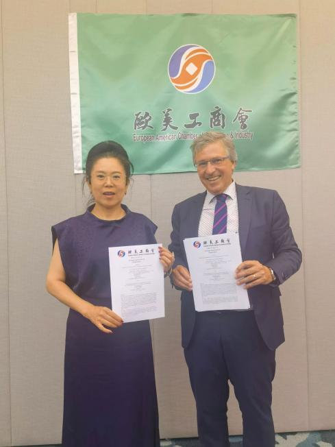 此外,荷兰国际贸易投资中心主任特意从荷兰赶来比利时布鲁塞尔参会并就欧盟整个形势和中国的双边投资领域的近期概况进行了相关的介绍及分析,以及中国和欧盟之间如何就投资贸易发展方向提出一些想法和建议,供中国企业和欧盟企业进行探讨和研究。同时,会后与欧美工商会签订长期战略合作,并在荷兰和中国广东互设办公室。