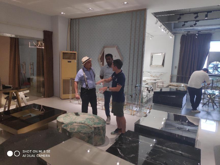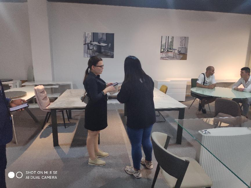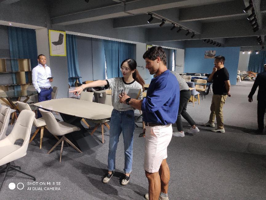 The third factory the delegation visited is Guangsheng,a factory that produces Dining table & chair and Sofa. All the representatives had a close look at