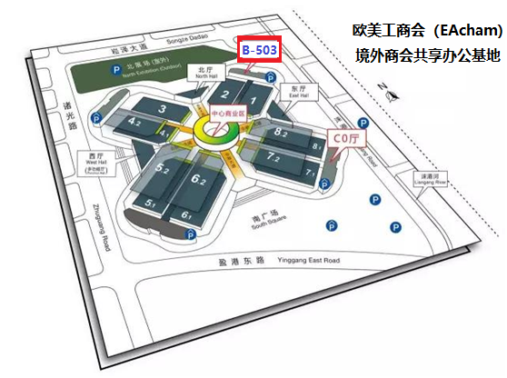 Shared office base is located at NO.503 of Office Building B, National Convention and Exhibition Center(Shanghai), where China Import Expo is located. It is 5A Class Office Building of National Convention and Exhibition Center (Shanghai),Now divided into 15 office areas, all members of EAcham can apply for free admission permits to China Import Expo through EAcham.