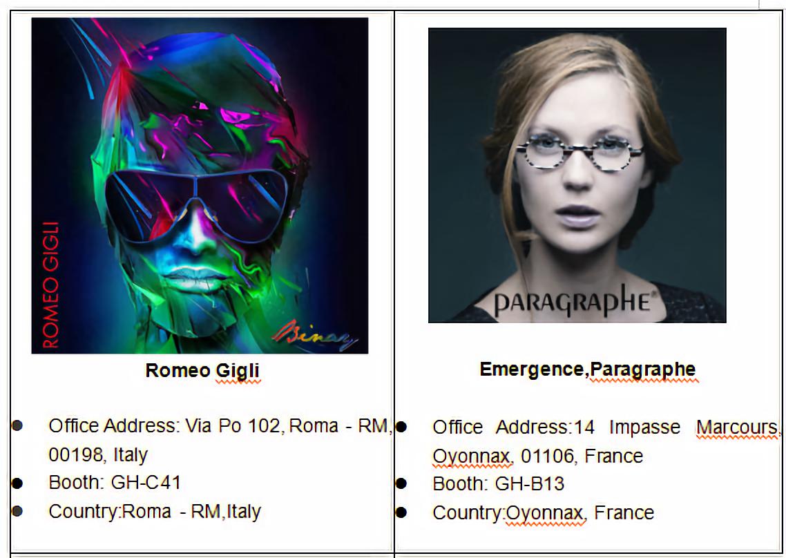 This year's show will feature 12 pavilions, including France, Italy, Japan, South Korea, Taiwan, etc., while the Chinese mainland has a strong lineup, including Yingtan, Jiangdanyang, Jiangxi, and newly-listed Zhejiang Mayu and Chongqing pavilions. The “Gallery Gallery”, the key exhibition area of the exhibition, has a collection of 230 famous eyewear brands from all over the world, including the newly exhibited Absolute Vintage Eyewear (Hong Kong), Maserati (Italy) and NANOVISTA (Spain). Other well-known international brands include Paul Hueman (Korea), BMW (Germany), Stepper (Germany), Matsuda (Japan), Etnia Barcelona (Spain), and Savile Row (UK).